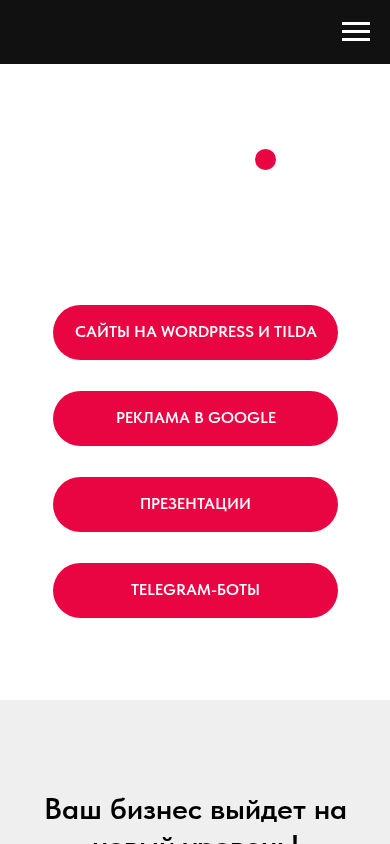 | Ключевые слова | Разработка сайтов под ключ Создание презентаций создание презентации для инвестиционного проекта Разработка Telegram-ботов Настройка рекламы в Google Ведение рекламных кампаний в Яндекс Digital-маркетинг |