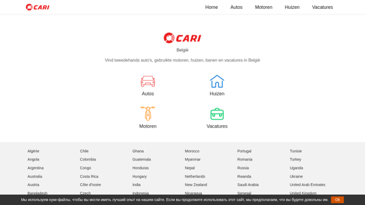 | AI-анализ | This online resource is a Belgian marketplace for buying and selling second-hand cars, used motors, houses, jobs, and vacancies. The website's title is "Vind tweedehands auto's, gebruikte motoren, huizen, banen en vacatures in België" and its description is "Zoeken naar gebruikte auto's, gebruikte motoren, huizen, banen en vacatures in België". The top keywords for this domain include "belgi", "motoren", "huizen", "vacatures", and "auto". The website contains sections for "Autos", "Motoren", "Huizen", and "Vacatures" in Belgium. Additionally, the website supports searching for second-hand items in various other countries such as Algeria, Angola, Argentina, Australia, Austria, Bangladesh, |