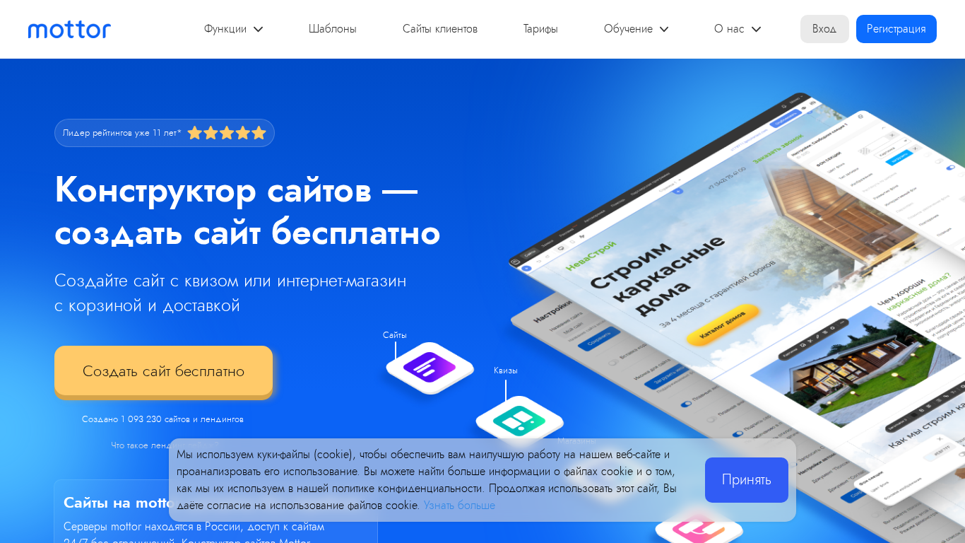 | SEO-описание | Запусти свой сайт за 5 минут: mottor — конструктор для бизнеса и фрилансеров. Без кода, без хостинга, с доменом в подарок. |