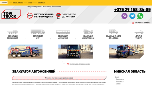 | SEO-описание | Услуги эвакуатор Минск: перевозка любых типов транспорта. Быстрая подача автоэвакуатора, 24/7, тел.: ✆ +375 29 158-84-85. |
