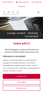 | AI-анализ | language: es type: website  This online resource, titled "ARCO Abogados," is a multidisciplinary legal and tax advisory firm, as indicated by its Spanish title and description. The website provides legal and tax consulting services to local and international clients. A cookie notification is displayed, informing users about the use of cookies for navigation improvement, targeted advertising, and traffic analysis. The website is in the Spanish language and is categorized as a website. |