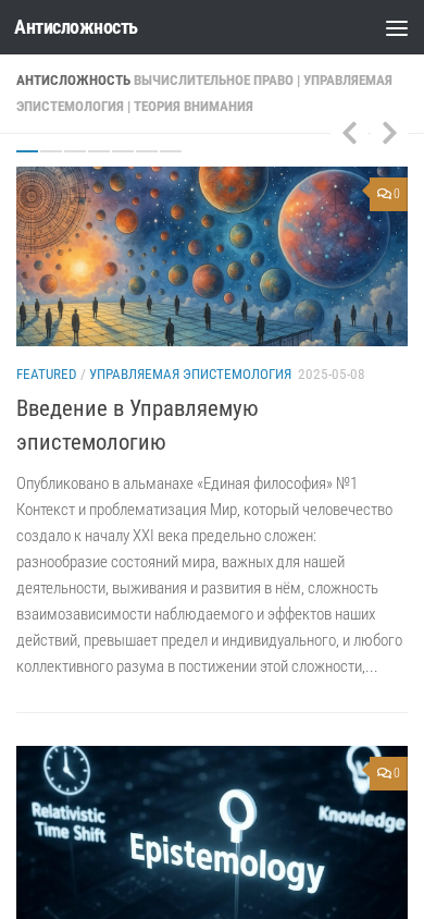 | AI-анализ | The web project "Anticomplexity.org" is dedicated to the study of computational law, controlled epistemology, and attention theory. The site features articles and publications, including one on systemic engineering from 2018, authored by 'admin', and another on managed epistemology from 2025. The content discusses the problem of human and group activity changing the world, the role of thinking in action, and the desire for efficiency and maximum effect. There is also a piece from 2025 introducing managed epistemology, contextualizing and problematizing the complex world created by humanity at the beginning of the 21st century, and discussing the role of text, metadata, and technological support in knowledge communication. |