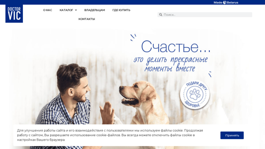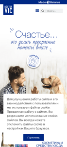 | AI-анализ | This website is the homepage of Doctor VIC, a pet care and veterinary products store. The title is "Главная - Doctor VIC," and the description mentions "косметика," "средства ухода," "ветпрепараты," and "питомцев." The top_words indicate that the website offers a catalog of cosmetics and care products for various pet breeds, types of fur, and ages, as well as veterinary preparations for preventive care and treatment. The website also mentions a modern pharmaceutical production certified by the GMP standard and effective formulas tailored to different breeds of dogs and cats. The website uses cookie files for site improvement and user interaction. |