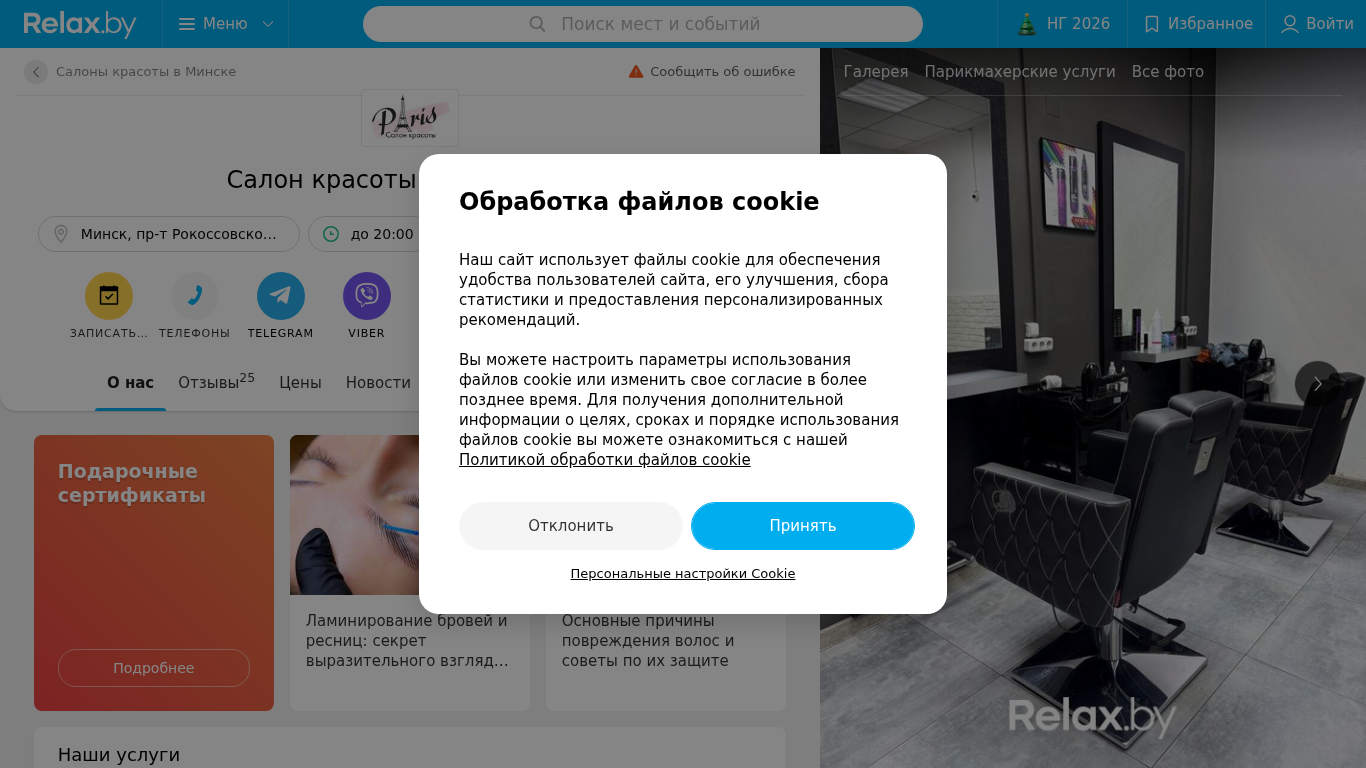 | Название / Заголовок | Салон красоты Paris (Париж) в Минске, пр-т Рокоссовского 49 – отзывы, время работы, адрес на карте,телефоны |