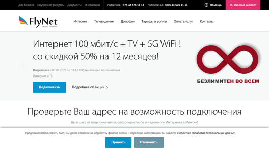 | Название / Заголовок | FlyNet - Интернет провайдер. Высокоскоростной интернет. Ethernet. Домашний высокоскоростной безлимитный Интернет. Подключение к Интернет в Минске. - Главная |
