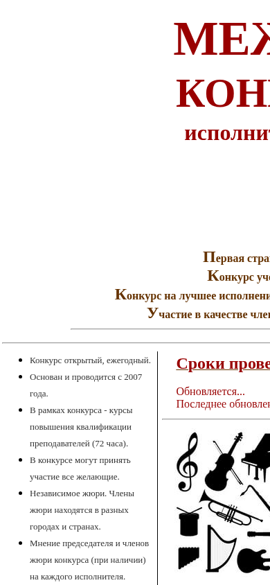 | Название / Заголовок | Международный конкурс-фестиваль исполнителей на музыкальных инструментах |