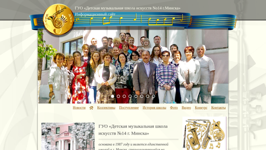 | AI-анализ | This website is for the "Детская музыкальная школа искусств No14 г. Минска" (Children's Art School No14 in Minsk), an educational institution in Minsk, Belarus, specializing in teaching the use of wind and percussion instruments for various orchestras. The school offers instruction in all wind and percussion instruments for symphonic, concert, and jazz bands: flute, oboe, clarinet, saxophone, bassoon, French horn, trumpet, trombone, euphonium, tuba, percussion, piano, accordion, and guitar. The school employs around 50 teachers and conductors, including soloists and artists from leading performance ensembles in the republic. Teachers at the school have received numerous accolades and awards from the Ministry of Culture, the Cultural Administration |