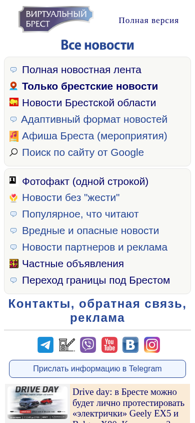 | Название / Заголовок | Виртуальный Брест - новости, информация, события, бизнес: портал города Бреста! |