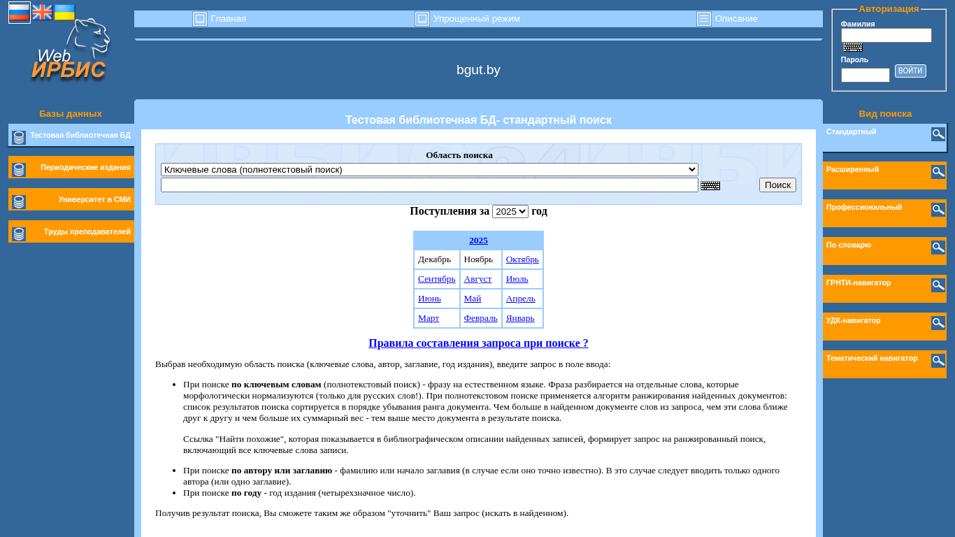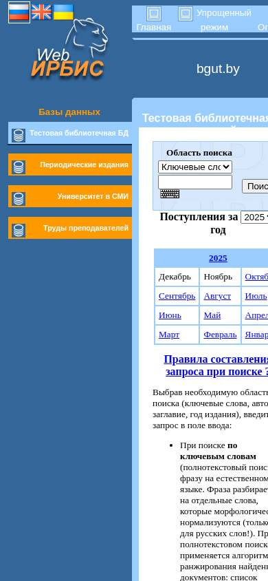 | AI-анализ | The portal bgut.by is a testing library website, offering a standard search function for various periodical publications, including university works and publications by teachers. Users can search by specific keywords, author, title, or year of publication. The search engine applies a ranking algorithm to the results, sorting them based on the number and proximity of the search terms in the document, as well as their overall weight. The site includes a "Find similar" link in the bibliographic description of discovered entries, which generates a query for a ranked search, including all the keywords of the record. The portal is part of the International Association of Users and Developers of Electronic Libraries and New Information Technologies (EBNIT). The domain is library.bgut.by. |