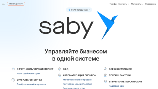 | AI-анализ | url: https://www.saby.ru/ The website Saby (formerly Sbis or sbis.ru) is a business management ecosystem. Manage your business in one system — Saby. Exchange documents, perform accounting and finance, automate business processes, conduct meetings, set tasks, and calculate payrolls for employees. Features include reporting through the internet, tax monitoring, accounting and accounting, EDO and business processes with counterparties, EDI and purchase orders, process management, international EDO, electronic signature, machine-readable trust documents, corporate portal, messaging, webinars, remote access, and more. The system is used by over 4.5 million clients. The company chose Saby because it integrates easily with the accounting system and supports electronic invoicing. Users praise its simplicity and convenience. For example, a chief personnel manager notes that Saby Docs has improved document |