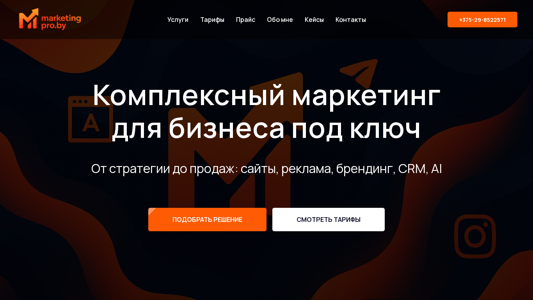 | Ключевые слова | маркетинговые услуги минск маркетинговое агентство минск комплексный маркетинг беларусь digital маркетинг минск digital агентство минск таргетированная реклама минск контекстная реклама минск SMM агентство минск SEO агентство минск продвижение са |
