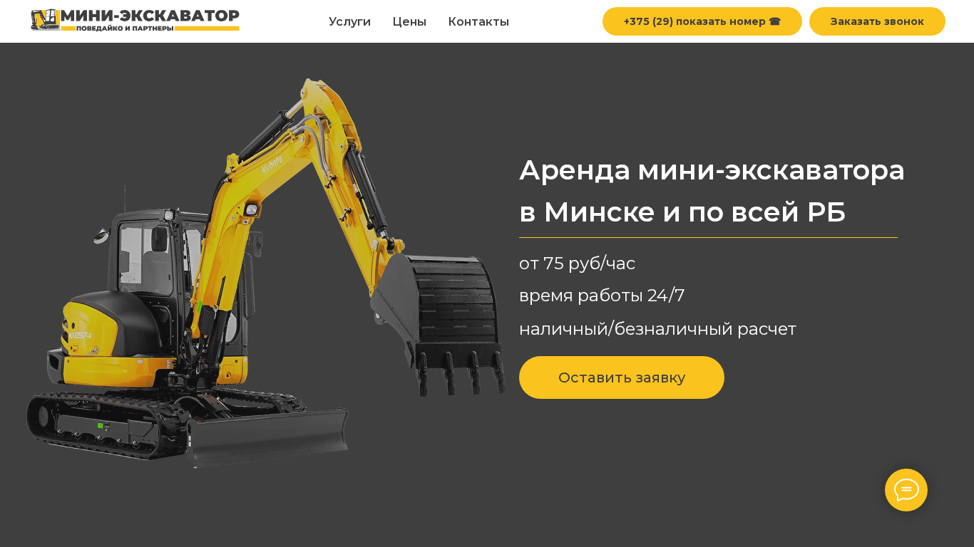 | SEO-описание | Услуги мини-экскаватора с оператором в Минске и области. Выезжаем в любую точку Беларуси. Низкие цены. Подача от 4-ч часов. |