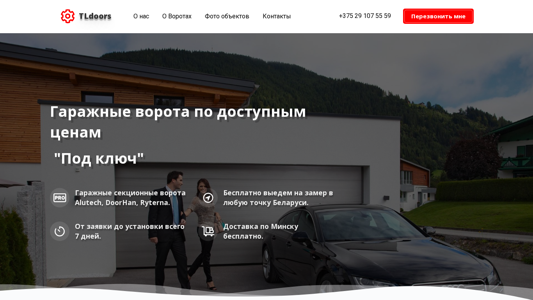 | AI-анализ | --- The web project "Гаражные ворота ворота.бел" (TL-Doors.by) is an e-commerce platform specializing in garage doors and automation systems. It offers a range of garage doors from Alutech, DoorHan, and Ryterna, available at affordable prices. Customers can request a free on-site measurement in any location in Belarus, and installation is promised within 7 days. The website also features photos of various objects and contact information. TL-Doors.by has been in operation since 2003 and boasts over 22 years of experience in the industry. Their installation teams undergo regular training and are skilled in installing, adjusting, and maintaining all types of garage doors. The company installs over 1,000 doors per year and offers delivery within Belarus, with free delivery in Min |