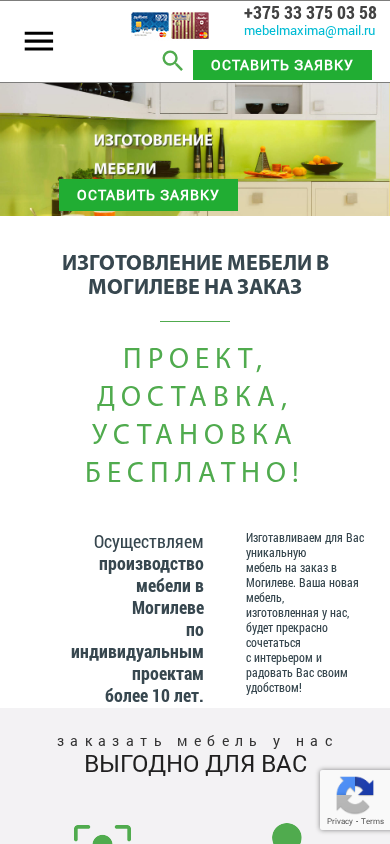 | SEO-описание | Мебель под заказ в Могилеве по индивидуальному проекту. Изготовление мебели всех видов с качественной фурнитурой. ✅Проект, доставка, установка БЕСПЛАТНО! ★ Рассрочка. ✅Большой опыт работы. Звоните! ☎ +375 33 375 03 58. |