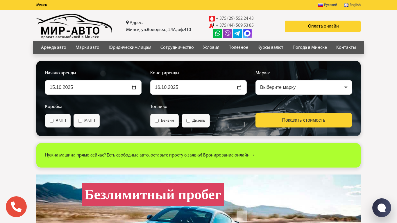 | Название / Заголовок | Аренда и прокат автомобилей в Минске недорого, взять авто в аренду на сутки или долгосрочно |Мир-Авто |
