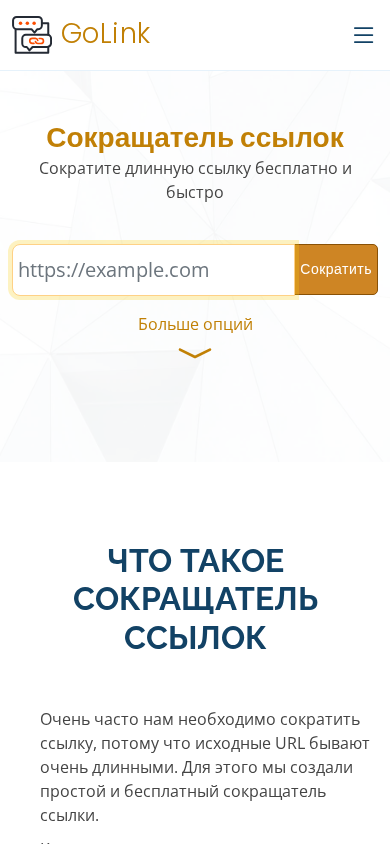 | AI-анализ | The portal GoLink is a free and simple online service for shortening links. The tool generates short links for VK, Google, YouTube and any other websites. |