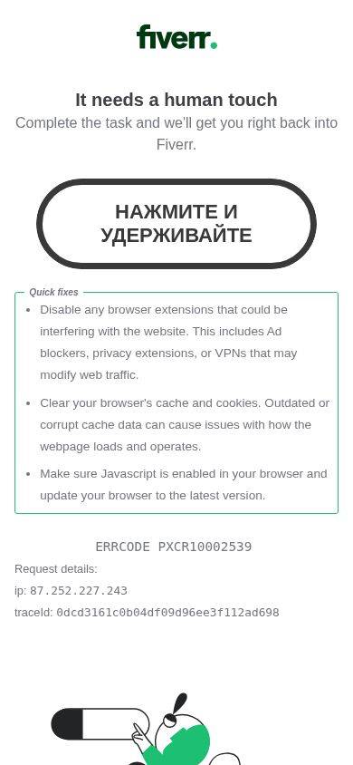 | SEO-описание | Complete the task and we'll get you right back into Fiverr. |