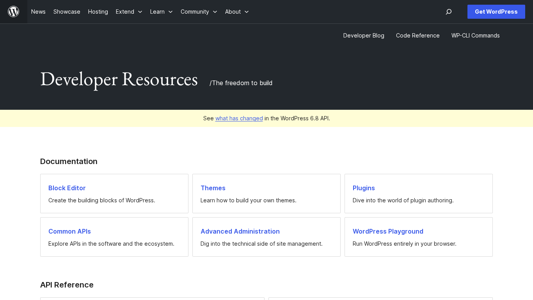 | SEO-описание | Official WordPress developer resources including a code reference, handbooks (for APIs, plugin and theme development, block editor), and more. |