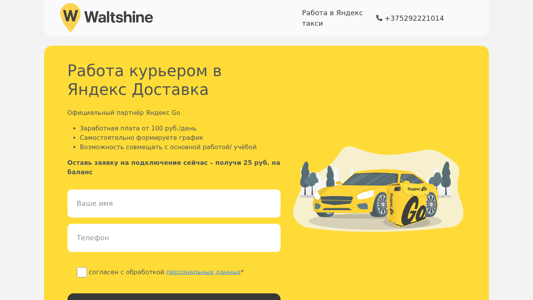 | AI-анализ | The website Waltshine is an official partner of Yandex Go, offering employment opportunities as a courier for Yandex Delivery. The website provides information on various types of work, including walking, cycling, and motorbike courier jobs, as well as jobs for auto and cargo delivery. The applicant needs to be at least 18 years old and possess a valid passport or residency permit, a mobile device running on Android or iOS, and a delivery bag. The hourly wage ranges from 100 BYN for walking, cycling, or motorbike couriers to 250 BYN for auto and cargo delivery, with the possibility of working a flexible schedule and earning bonuses. The website also mentions the availability of a thermo-box for cargo delivery, with rental and purchase options. The company is based in Belarus, and its office is located in the city. |