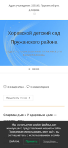 | AI-анализ | This online resource belongs to the Kindergarten of the Pruzhansky District Education Department in Belarus. The website provides news, conditions of admission, pedagogical staff information, and announcements for parents. There are several published posts, including one titled "Spartan Training 'For the Healthy Body and Soul'" where a physical education instructor conducted spartan training for children to develop their physical abilities, reaction, motor skills, and other physical qualities. Another post, "Training on a New Playground," describes the instructor using creative methods and various sports equipment to engage children in various physical activities under music. The website also mentions an event called "Letter about Belarus" where children learned about the history and traditions of Belarus through a journey in a historical form, and created photo reports for their new friends from different countries. Additionally, there is a post about early gymnastics. |