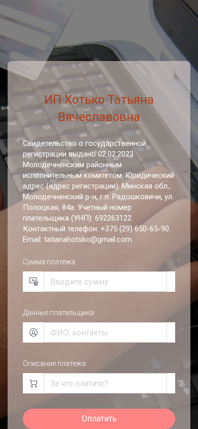 | Название / Заголовок | ИП Хотько Татьяна Вячеславовна |