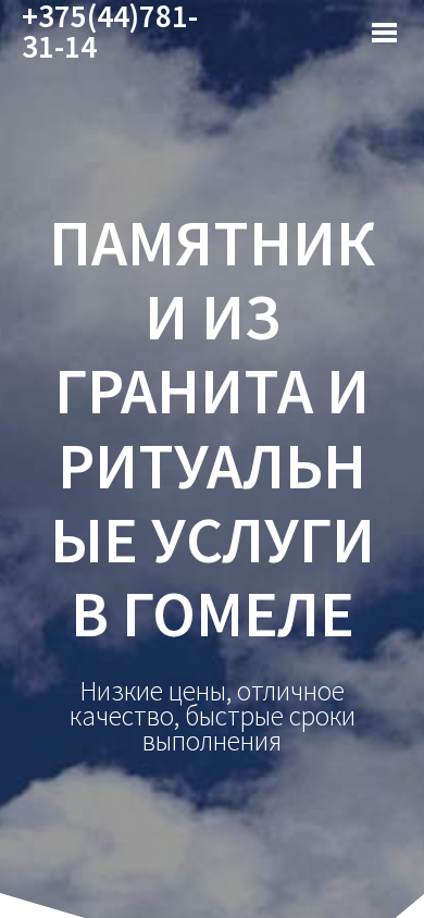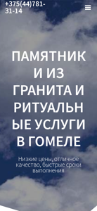 | AI-анализ | This website is an organization offering funeral services and grave monument production in Homel, Belarus. Products and services include grave tile laying, fences, and various ritual goods. The website's title is 'Изготовление памятников и оказание ритуальных услуг в Гомеле ⋆' and it can be reached through the contact number '+375(44)781-31-14'. The main sections of the site are 'Памятники', 'Памятники из гранита', 'Памятники из бетонного камня', 'Памятники из гранитно-мраморной крошки', 'Ограды', 'Ограды из железа', and 'Ограды из гранита и гранитно-мраморной крошки |