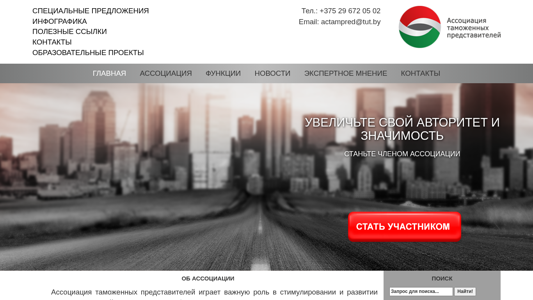 | AI-анализ | --- The website is for the Association of Customs Representatives in Belarus. It provides information about the organization's role in stimulating and developing entrepreneurial activities in the field of customs services, improving the business climate in the country, and creating favorable conditions for successful international economic cooperation. The website offers expert opinions, educational projects, and contacts for membership and becoming an expert. It also features news, events, and various beneficial resources such as infographics and useful links. The menu includes sections on the association, its functions, news, expert opinions, and contacts. The website also provides information on becoming an expert with the association and its advantages, as well as upcoming events such as the 24th Moscow International Logistics Forum and the 25th International Exhibition of Transport and Logistics Services, Warehouse Equipment and Technologies. |