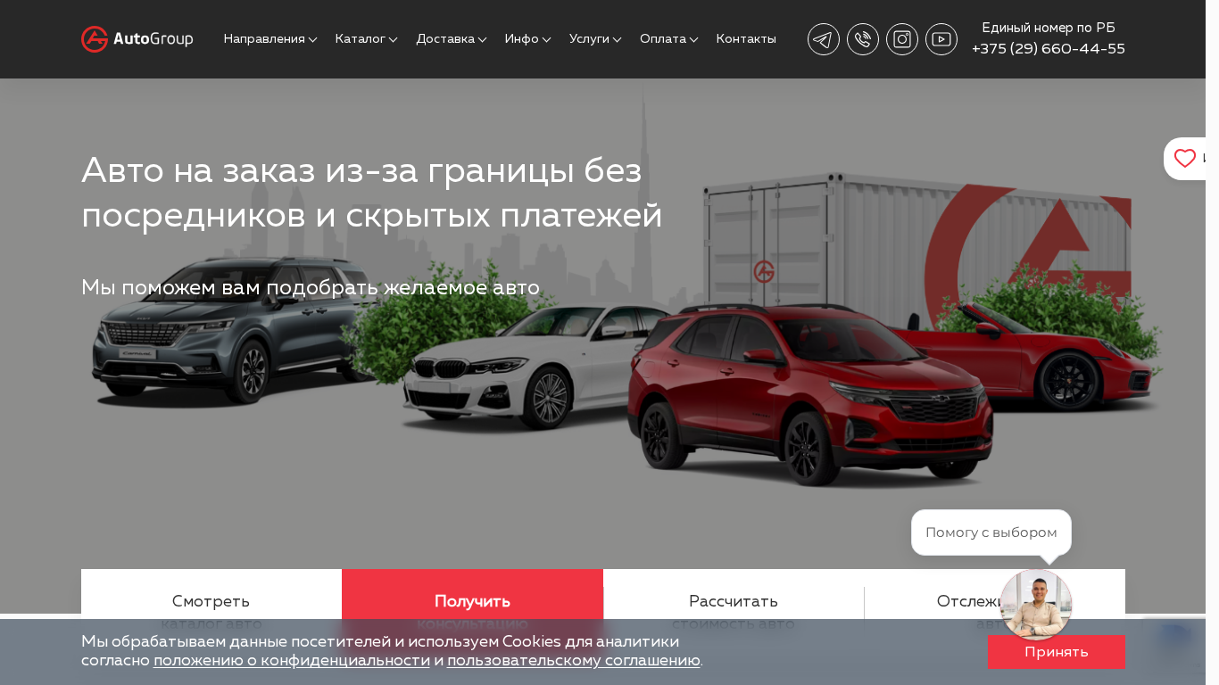 | SEO-описание | AutoGroup — авто под заказ с мировых аукционов и площадок. Пригоним авто под заказ из США, Европы, Китая, Кореи. Доставка авто из-за границы в Беларусь. Офис АвтоГрупп в Минске, Гомеле, Бресте, Гродно. |