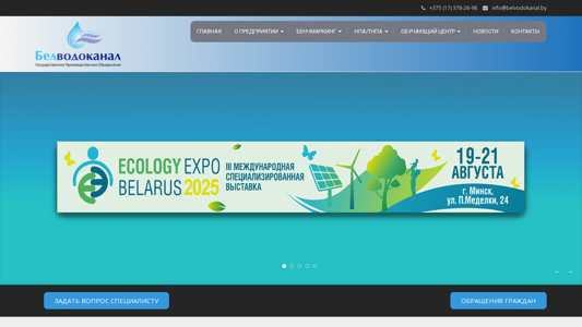 | AI-анализ | This website belongs to the State Unitary Enterprise "Belvodokanal," which focuses on professional water care in Belarus. The enterprise aims to implement a unified economic, technical, and investment policy in the water supply and sewage (sewage system or canalization) sector of the Republic of Belarus. It strives for balanced development of water supply and sewage systems in all regions of the republic and continuously improves industry policies and legislation. The website provides information on the company, its projects, educational opportunities, and contacts for citizens. |