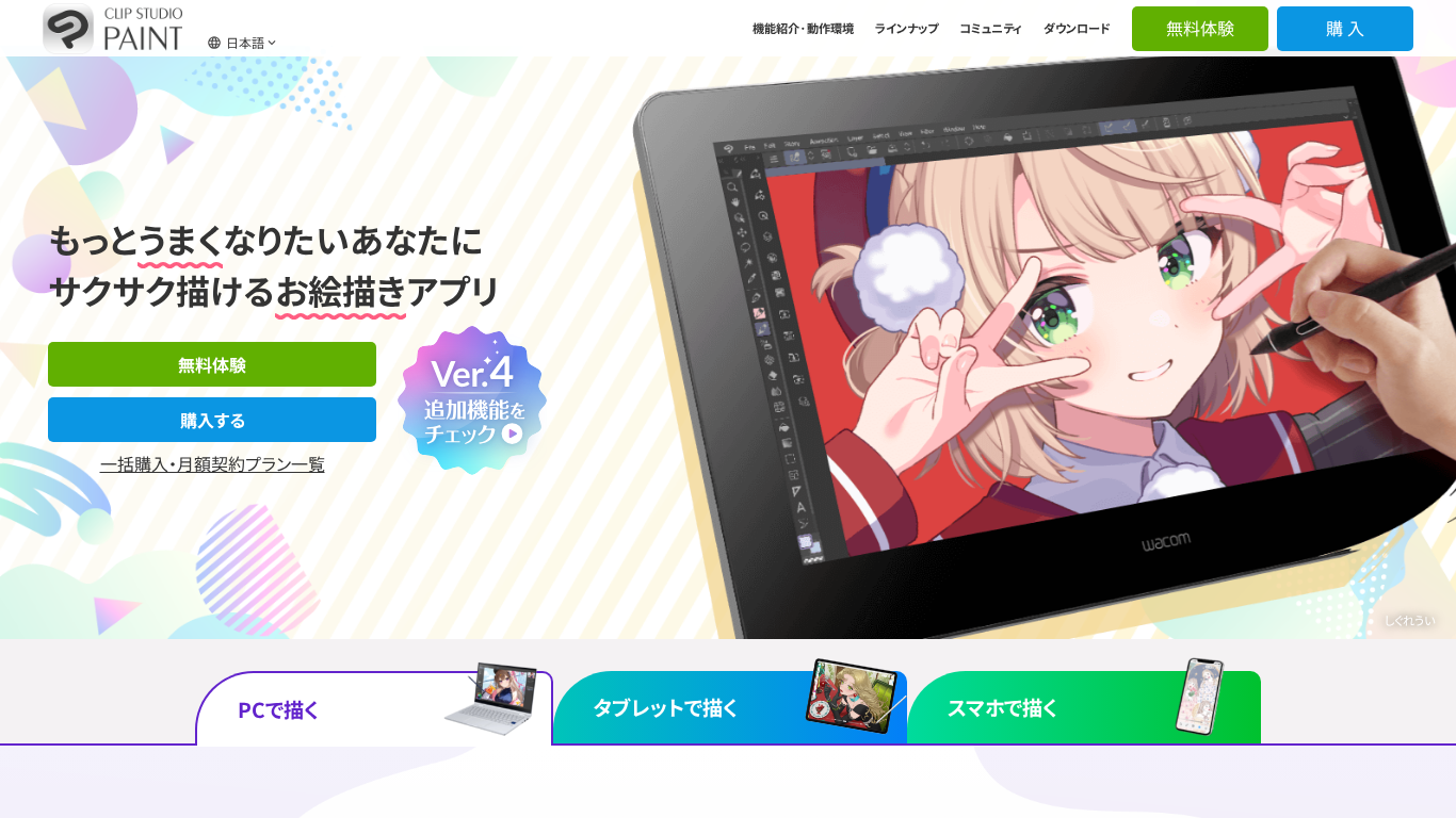 | SEO-описание | イラスト・漫画・アニメーションなどの作品制作に幅広く使えるペイントアプリ。PC・スマホ・タブレット対応で、今すぐ無料で始められます。 |