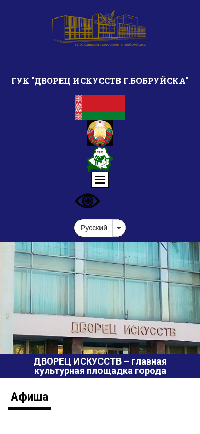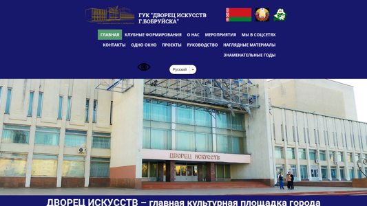 | AI-анализ | The website "Дворец искусств" (dvorezbobr.by) is the primary cultural venue in Bobruisk, Belarus. It offers various activities including a club for people with disabilities, folk ensembles, amateur organizations, and a schedule of events. The website also includes information on the palace's history, working hours, ticket prices, and contact details. Additionally, it features projects related to humanitarian and creative efforts, as well as initiatives against corruption and extremism. A notable event listed is "Битва саундтреков 1" on October 18, 2025, which is described as an emotional journey into the world of beloved films through live performances of their soundtracks. The website is operated by the "Дворец искусств" organization and includes administrative procedures and guidelines for electronic inquiries. It also features a |