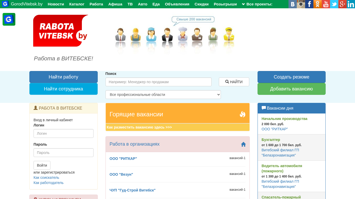 | Название / Заголовок | Работа в Витебске. Вакансии, подработка, поиск работы в Витебске |