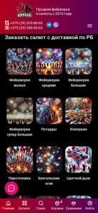 | AI-анализ | Этот сайт, названный "Купить фейерверки по выгодной цене в Минске | Заказать салют с доставкой", является электронным платформой, предлагающей продажу фейерверков и салютов с доставкой по всей Беларуси. Сайт начал свою работу с 2010 года и предлагает широкий ассортимент товаров, включая различные виды и размеры фейерверков, салютов и пиротехники. Каталог продукции включает в себя маленькие, средние, большие и супербольшие фейерверки, а также фейерверки на ракетах, веерные фейерверки, салюты для церемоний смена пола, детские фейерверки и различные виды пиротехники, такие как римские свечи, бенгальские огни, цветной дым, фонтаны. Сайт также предлагает скидки на некоторые из товаров. |