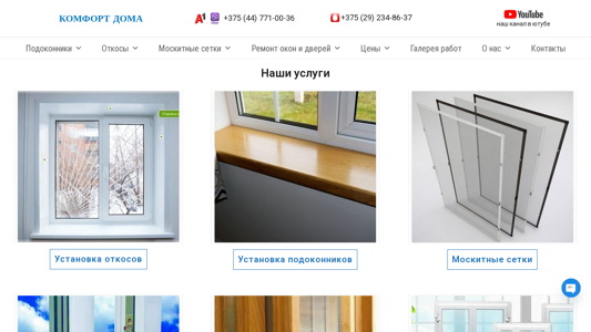 | Название / Заголовок | Установка откосов и подоконников | Ремонт окон | Москитки |