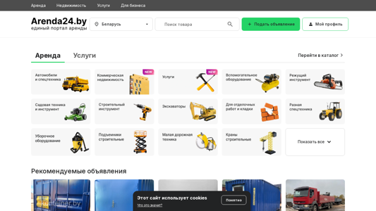 | SEO-описание | Аренда24 – единый портал, где легко взять или сдать в аренду коммерческую недвижимость, строительную технику и оборудование среди организаций и ИП по всей Беларуси. |