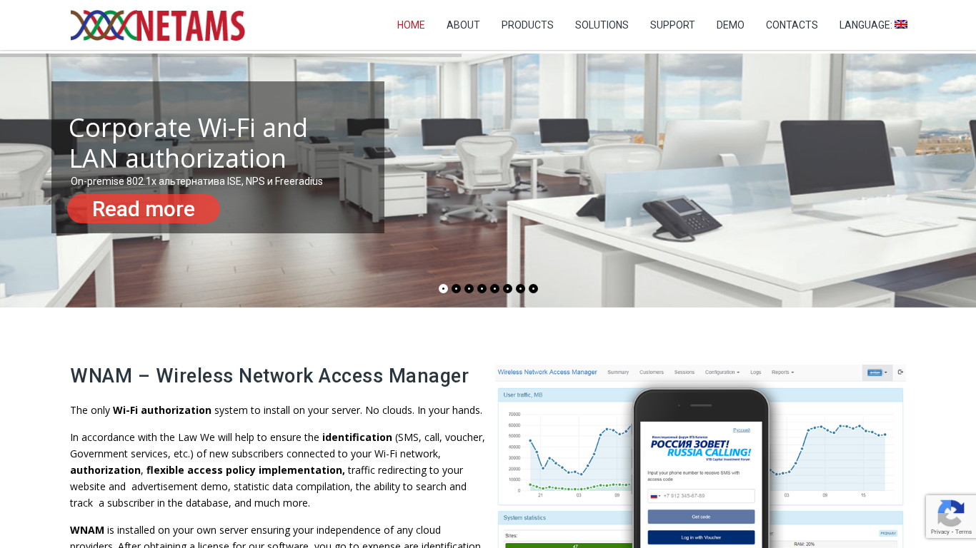 | AI-анализ | The web project "Netams.com" offers a Wi-Fi authorization system, named Wireless Network Access Manager (WNAM), for self-hosting on one's server. Users have complete control over their data. The website provides detailed information about the product's purpose, features, and compatibility, as well as a comparison with other solutions. The target audience includes businesses, hotels, service providers, advertisers, and government agencies. The site is available in both Russian and English languages and offers support, documentation, and a demo for potential buyers. WNAM is an on-premise 802.1x alternative to ISE, NPS, and Freeradius for corporate Wi-Fi and LAN authorization. |