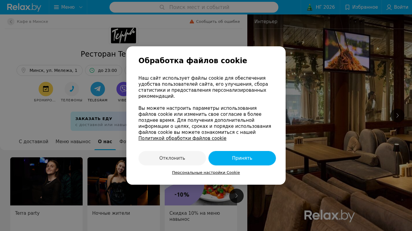 | SEO-описание | Ресторан Terra (Терра) в Минске – отзывы, телефоны, график работы и карта проезда на Relax.by |