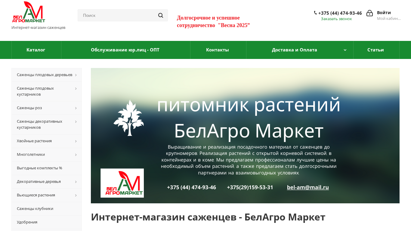 | SEO-описание | 🌱🌳 Интернет-магазин БелАгро Маркет поставляет саженцы питомника растений по эксклюзивным ценам. ⚡ 100% гарантия качества. 🚀 Доставка по всей Беларуси почтой или курьером, самовывоз в Колодищах! |