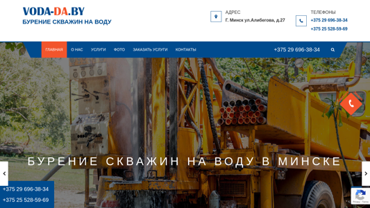| AI-анализ | --- The website is a company based in Minsk, Belarus, providing water borehole drilling services. With a decade of experience in the industry, the company offers services related to water supply and drilling works in Belarus. The homepage includes information on water borehole drilling in Minsk and the surrounding area, as well as contacts for consultations at +375 29 696-38-34. The website also mentions services for cleaning, repairing, and outfitting boreholes. Keywords associated with the website include 'drilling', 'Minsk', 'water', 'boreholes', 'services', and 'companies'. The website's top words suggest a focus on boreholes and drilling services in Minsk. The company offers drilling services for various applications such as water supply for urban areas, cottage settlement |