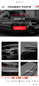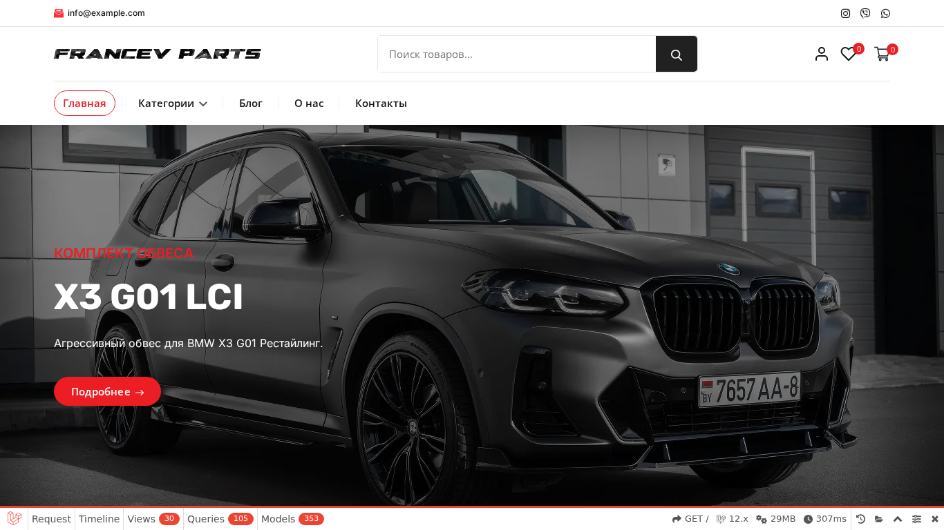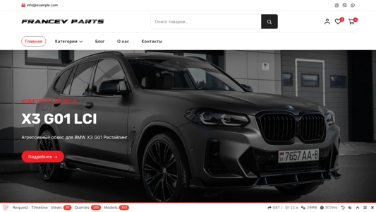 | AI-анализ | The web project "Ваш магазин - Интернет-магазин в Минске" is an e-commerce platform selling automotive parts and accessories. The website offers high-quality products at affordable prices and ensures quick delivery. Customers can pay using credit cards or cash on delivery. The site utilizes PHP, Laravel framework, and Illuminate, with a focus on the 'product' and 'attribute' keywords, and includes various categories for different BMW models such as 3 series, 4 series, 5 series, X3, X5, and X6. The homepage displays popular items, with a wishlist and shopping cart functionality. The domain is francevparts.by. |