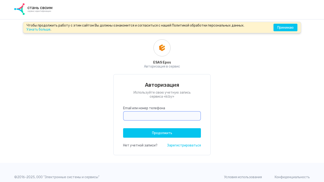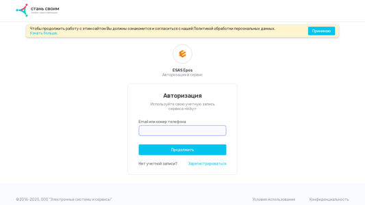 | AI-анализ | The portal ESAS Epos is a website requiring user authorization to continue access. It is associated with the company "Электронные сиstемы и сервисы" and uses the domain epos.hutkigrosh.by. Users must first familiarize themselves with and agree to the website's data processing policy before proceeding. Authorization can be done using an existing account with the service "iii.by" through an email address or phone number. If a user does not have an account, they can register. The website was first created in 2016 and is protected by terms of use and confidentiality agreements. |
