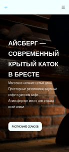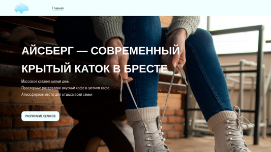 | AI-анализ | The portal Iceberg is a contemporary covered skating rink located in Brest, Belarus. It offers mass skating all day long with spacious changing rooms and a cozy cafe for visitors. The attractive atmosphere makes it an ideal place for family relaxation. The website includes a main page and a menu section. Copyright © 2025. Design by [Name]. |