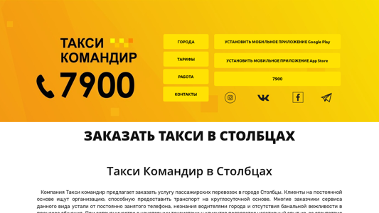 SEO-описаниеТакси Столбцы. Короткий номеру 7900. Заказать такси онлайн. Скачать мобильное приложение Такси Командир. Бонусы. Самые низкие тарифы на поездки. Такси в аэропорт.
