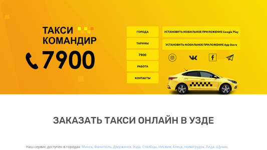 SEO-описание | Такси Командир в Узде телефон. Скачать мобильное приложение. Позвонить по короткому номеру 7900. Такси в аэропорт. Низкие тарифы и цены на поездки. |