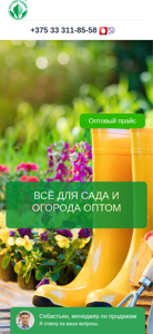 | AI-анализ | This online resource is titled "Товары для сада и огорода оптом | Бел-био Альянс" (Products for the Garden and Orchard Wholesale | Bel-Bio Alliance) and is focused on selling garden and orchard products in bulk. Keywords associated with the site include 'price', 'receive', '375', 'soil', 'request', 'bel-bio', 'alliance', 'optovyy', '0162', 'gel', '100', 'fasco', 'universal', 'question', 'you', 'goods', 'garden', 'orchard', and 'wholesale'. The site offers a price list and is a partner of the Bel-Bio Alliance, which has been in business since 1994. The catalog includes over 1500 |