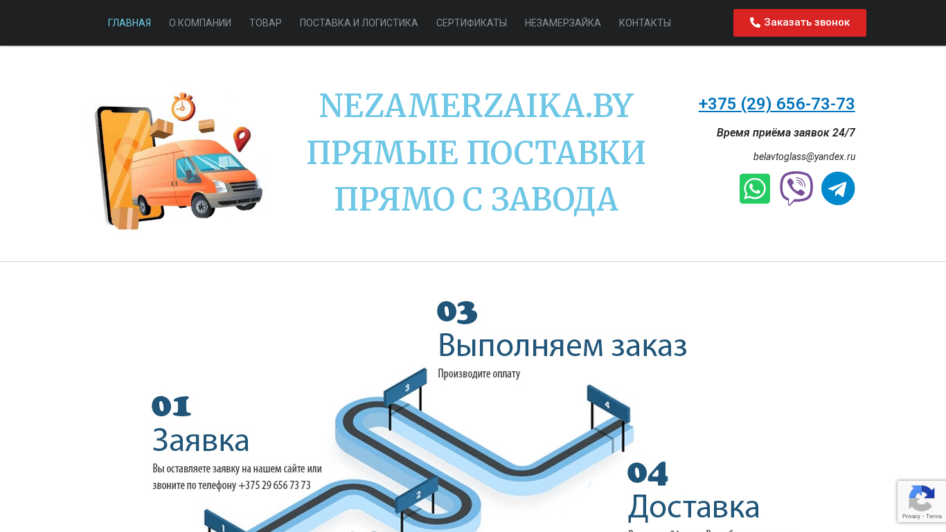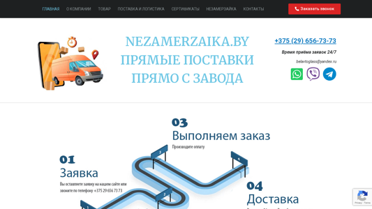 | AI-анализ | This website is for selling Nezamerzaika, a type of product, directly from the manufacturer. The homepage includes sections for the company, product, delivery, and certificates. The website mentions that Nezamerzaika is available for sale in 2022-2024, with a minimum price of 3.90 BYN. The product has passed certification and is guaranteed to maintain the stated temperature range from 0°C to -30°C. The website provides contacts for placing orders and offers delivery within the shortest time frame. The product can be picked up from a warehouse in Minsk or delivered throughout Belarus. The website states that all products are certified and safe for people when handled properly, and do not harm glass, paint, metal parts, or rubber seals in vehicles. The temperature guaranteed for the product is -30°C. |