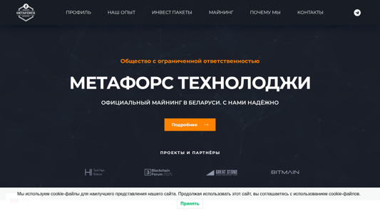 | AI-анализ | The portal Metaforstech.by, also known as "MetaFors Technologiji," is a Belarusian company specializing in cryptocurrency mining. With over a decade of experience, they have successfully helped clients achieve maximum efficiency in cryptocurrency mining. The company offers solutions for industrial-scale mining, from energy supply to innovative cooling systems and intelligent equipment management. Belarus's favorable conditions, including accessible electricity, a moderate climate, and advanced IT infrastructure, make it an ideal location for creating profitable mining clusters with quick return on investment. Metaforstech.by has been a leading player in the market since its inception in 2013, providing reliable and profitable investment opportunities for cryptocurrency mining. The company's history began with the exploration of blockchain technologies and the development of early mining solutions, which formed the foundation for its future business. In 2015, they |