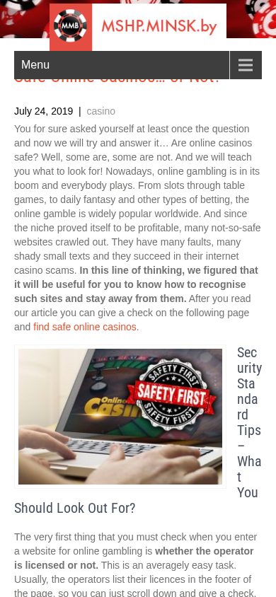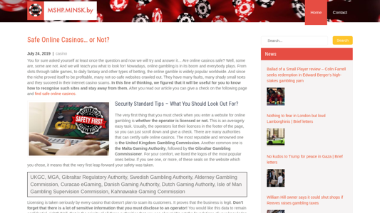 | AI-анализ | This website is a blog about gambling in Belarus, specifically focused on Minsk and online casinos. The title is "Minsk Casino Guide: A Blog About Gambling in Belarus." The description includes information about the safety of online casinos and how to identify secure websites. Keywords related to casinos, gambling, and Belarus are frequently used. The website includes a section about safe online casinos, with a list of licensing authorities and their logos. The blog aims to educate users on how to recognize secure online gambling sites and avoid scams. |