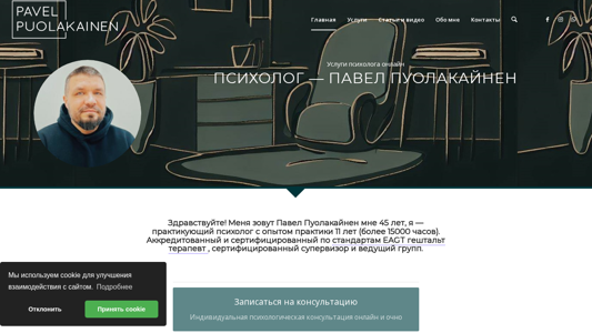 | SEO-описание | Павел Пуолакайнен - практикующий психолог. Консультирую и помогаю в трудных эмоциональных и кризисных ситуациях. Запись и цены. |