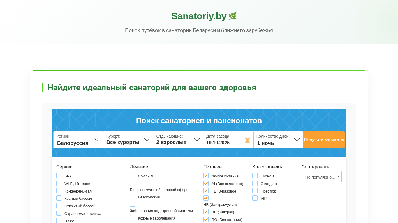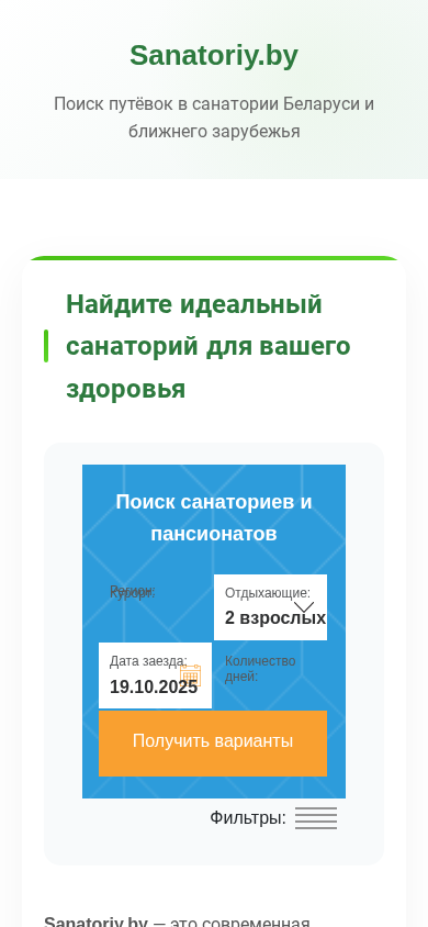 | Название / Заголовок | Sanatoriy.by - поиск путёвок в санатории Беларуси и СНГ |